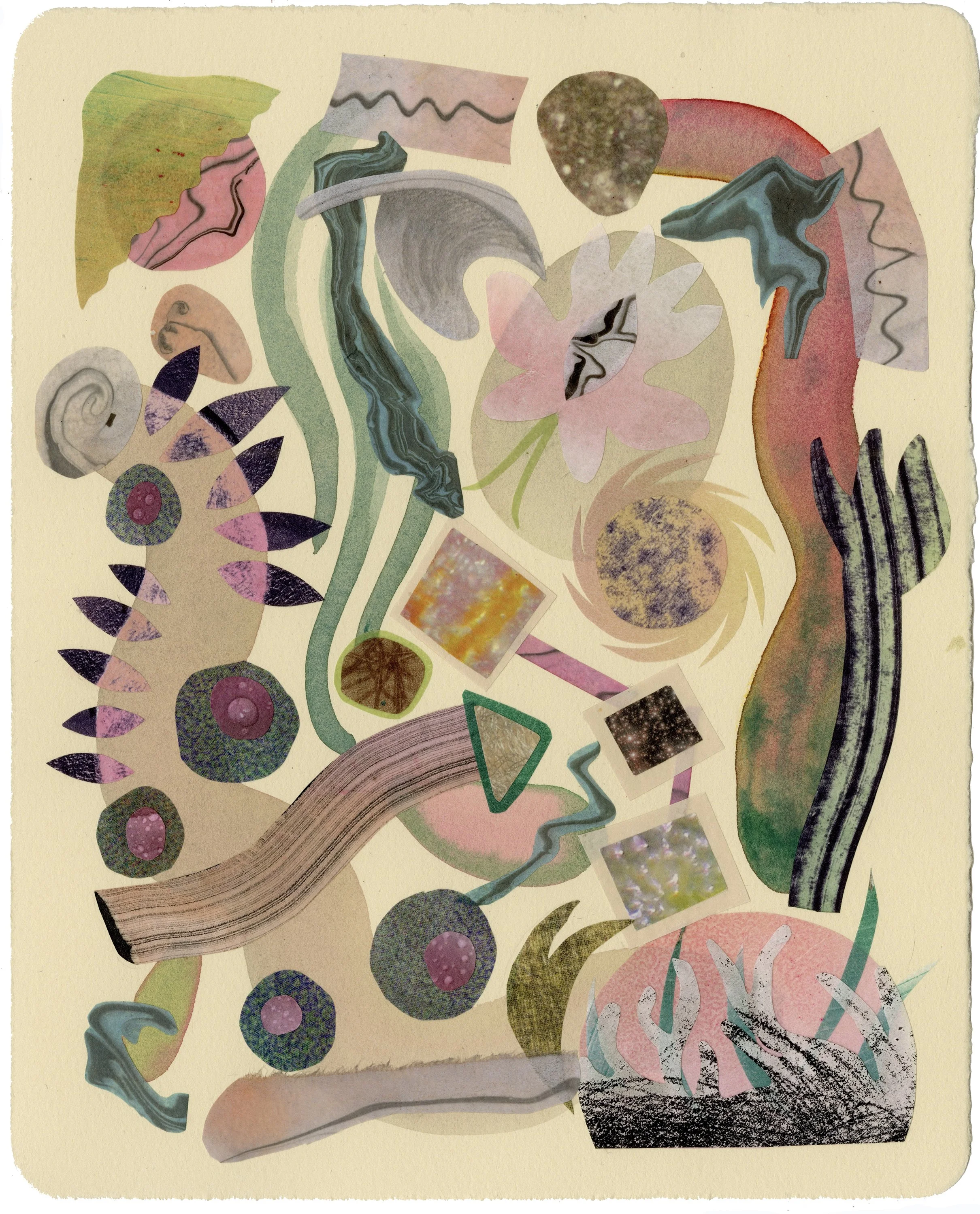 From Shells, Collaged monotypes, Watercolor, 11”x15”, 2019