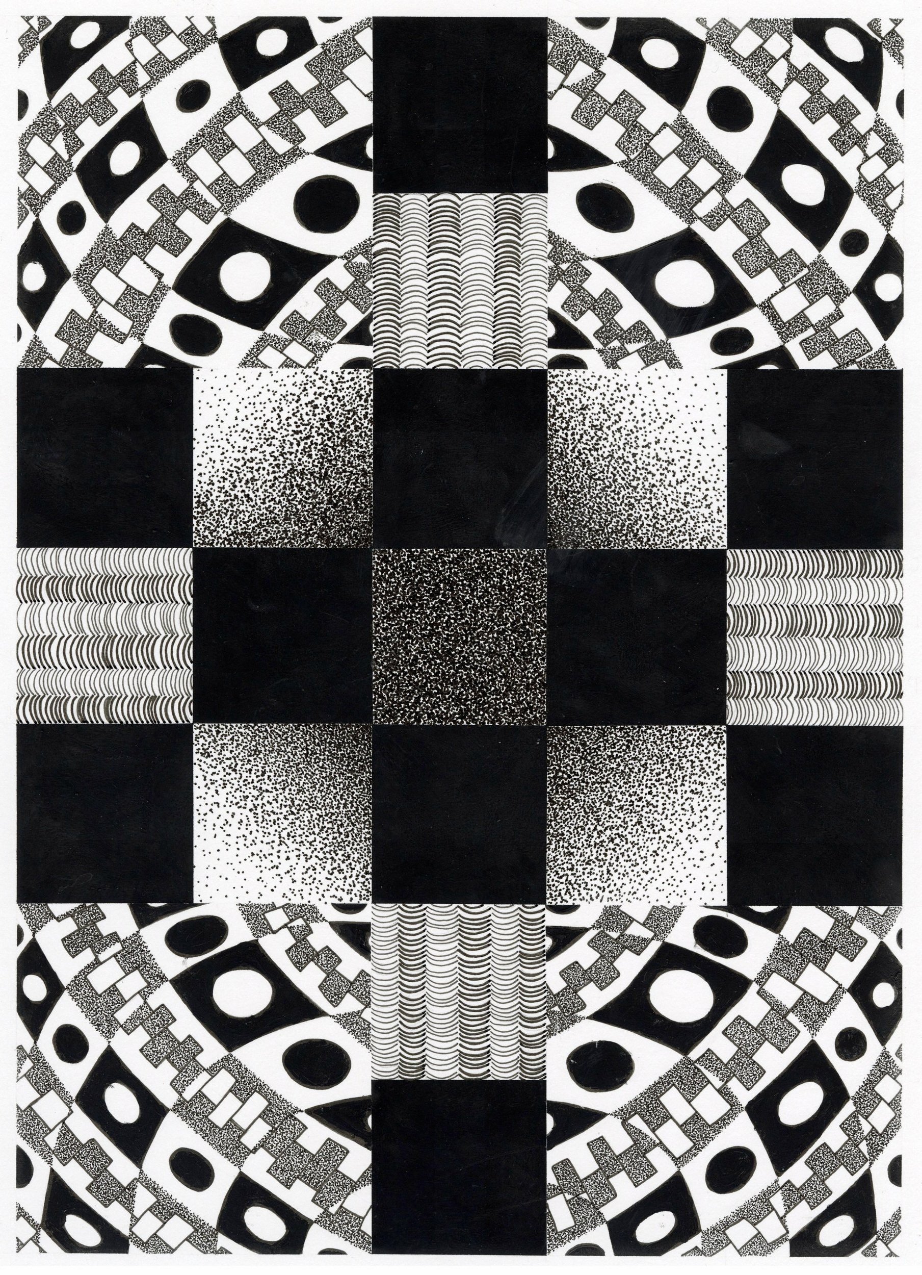 In contrast to the former project where planning is key, this project emphasizes a process-oriented approach where students make visual decisions intuitively as they go using micron pens. Students are encouraged to explore abstract or representational imagery, and to formulate creative and visually interesting compositions.